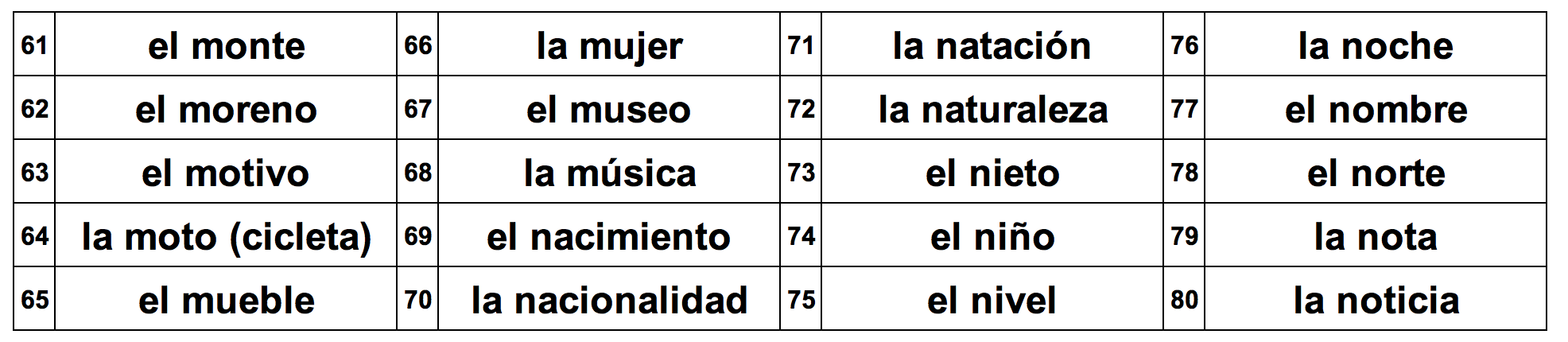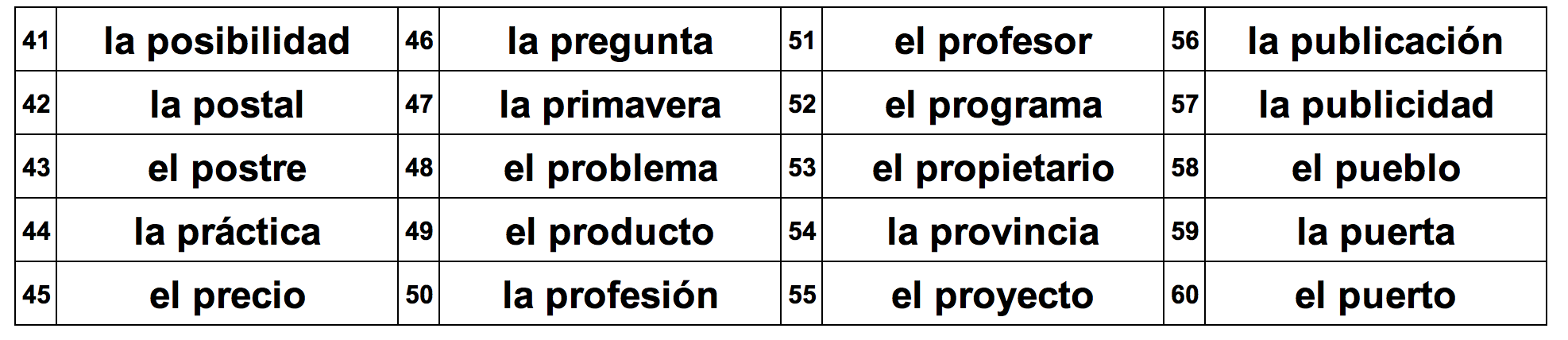 DELE-A1 S-01 : 形容詞と名詞を含む単語 16語
