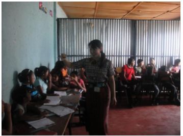 同僚看護師達や地域リーダー、障害を持つ子の母親への勉強会、妊婦・産後学級を実施しています。小学校や教員養成学校で、性教育を教えることもあります。先日はグアテマラ以外で活動している助産師隊員を訪ねて、妊婦さんを対象に一緒に母親学級を行いました。